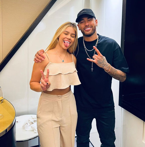 Ao lado do namorado Alê Oliveira, a jovem assistiu a uma partida do Paris Saint-Germain e conheceu o jogador brasileiro