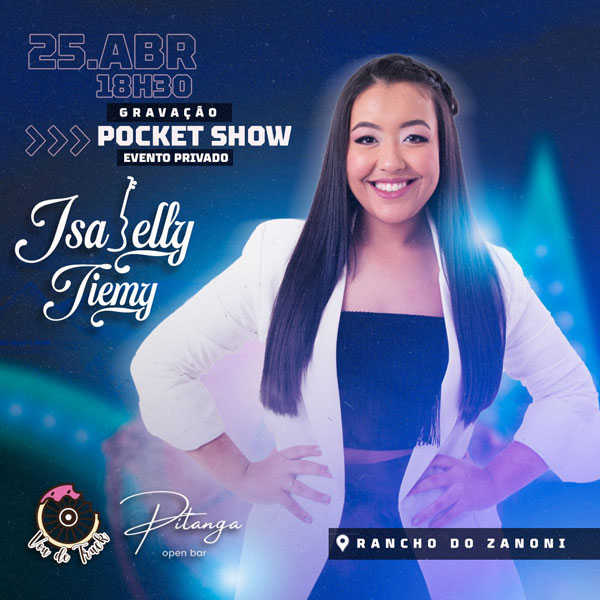 Nasce no coração de Isabelly Tiemy, agora com 15 anos, a vontade de experienciar novos voos. O desejo de ter seu próprio “POCKET SHOW” é uma apresentação musical de curta duração. O POCKET SHOW é produzido geralmente para um público pequeno, empresas, reuniões de negócios, datas comemorativas e afins.